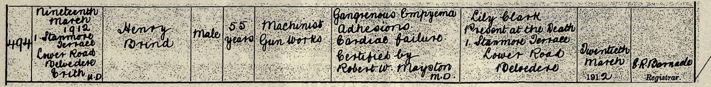 Labourer Royal Arsenal | Elizabeth M A Brind Mother 27 Orchard Place Plumstead |