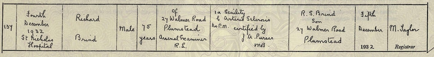 R S Brind Son 27 Walmer Road Plumstead |