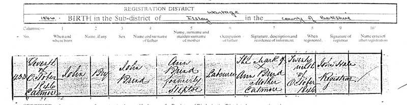 | Wantage 1846 BIRTH in the Sub-district of Ilsley in the County of Berkshire |