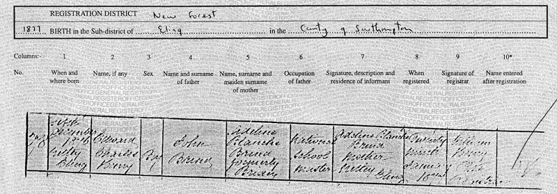 | Registration district of New Forest 1877 BIRTH in the sub-district of Eling in the County of Southampton |