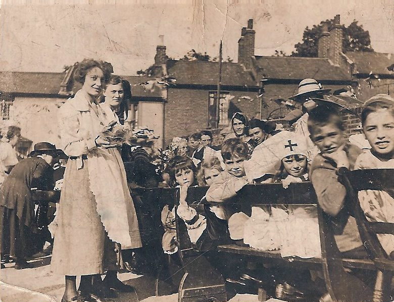 | This photo is at the junction of Bramblebury Road / Durham Rise taken at a street party at the end of the 1st World War. The lady's name at the forefront of the picture is Florence Bingham and the lady next to her is Lilian Crawford. I got this info from Flo ' s daughter who is 82 years old now. But I consider the info reliable. Photo: Margaret Forbes with the kind help of the Greenwich Heritage Centre (From www.plumstead-stories.com) |