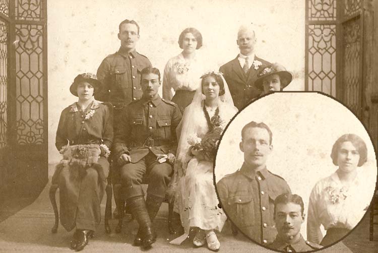 Hi Jonathan. I hope you are ok. I couldnt remember if I had sent that photo, so just incase I didnt Im resending it. The photo was taken at my grandads uncle Walter's (Willsher) wedding. My grandads sister has seen the photo and she doesnt recognise the man stood next to her mum. Her mum, my gt-grandmother (Walter Johns wife) is stood in the back row, center. My gt-grandmother only had brothers (I think there were 5 in total). All her brothers were in the army. The things going FOR the man stood to her right being Walter John Brind is.... there are no photos and noone knows what he looked like the wedding photo was taken in the short time Walter John and my gt-grandmother were married. Walter was in the army The things going AGAINST the man stood to her right being Walter John Brind is.... Walter Willsher had 4 brothers. It could simply be one of his brothers being a best man All Walters brothers were in the army Also as far as everyone knows, there was no photos taken at Walter John's and my gt-grandmothers wedding. Could they have had this taken because they didn't have their own wedding photo taken? Do different regiments in the army have different uniforms? I guess I could always look on the wedding certificate, although this still doesn't mean the man in the photo is the best man. Also why would my grandad keep a photo of his uncle's wedding and none of his mum's second marriage to his step dad. He always called (and thought of his step dad) as his real dad. Hopefully it's not too confusing. Chat soon Carl |