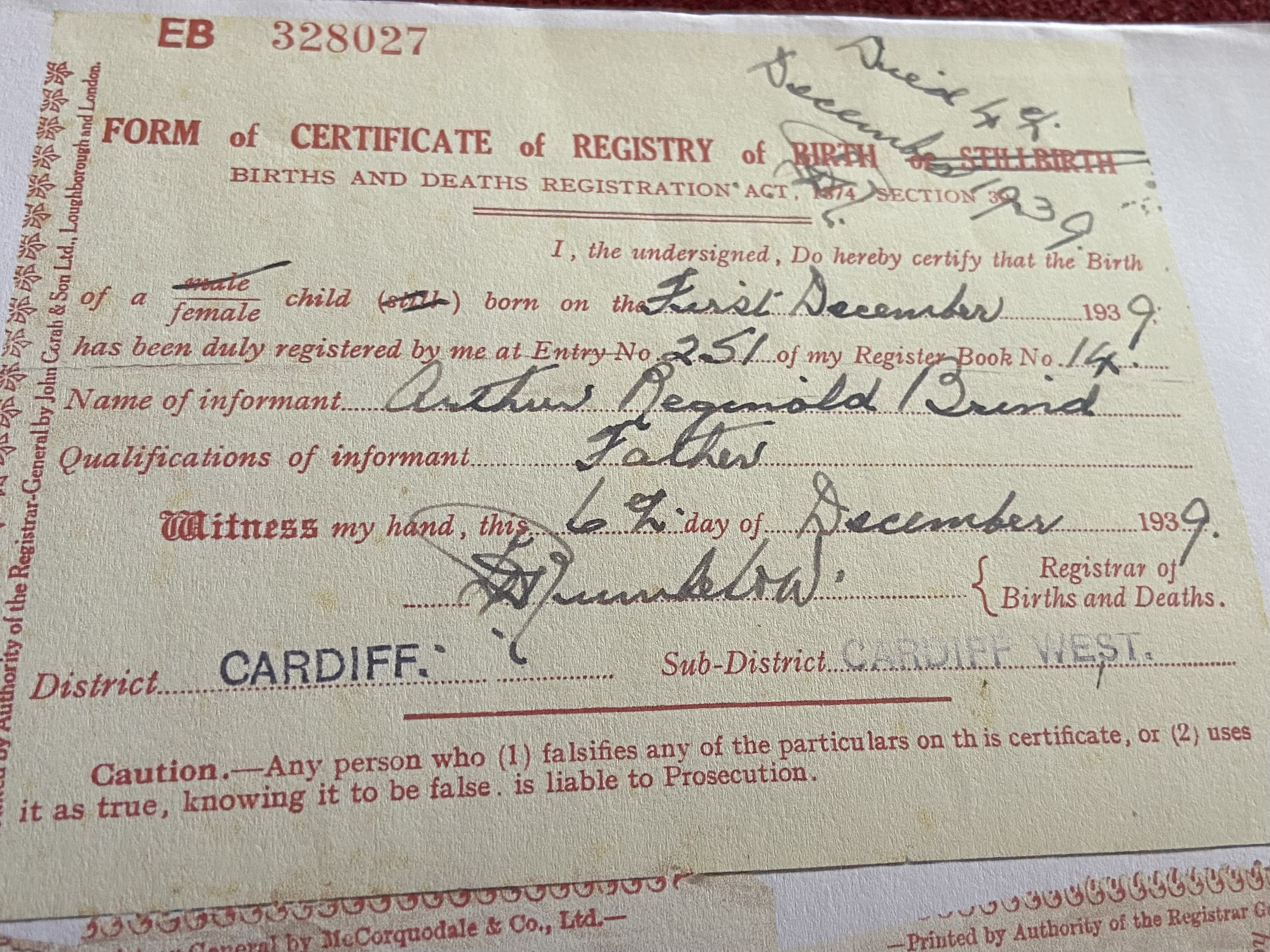 | b 29/Nov/1915 Cardiff | b. ???? | |