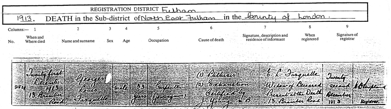 E L Fasquelle widow of deceased present at the death 13 Bramber Road |