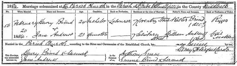 Henry Brind | 24 | Bachelor | Labourer | 7 Coventry Street | Walter Brind (dec.d) | Rigger |