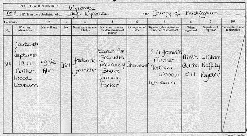 Girl | Frederick Franklin | Sarah Ann Franklin previously Shave formerly Parker |