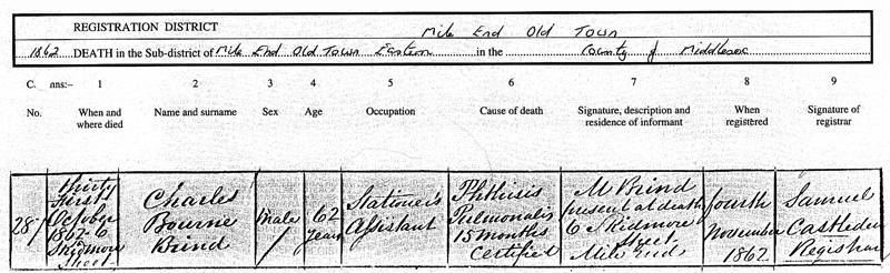 | M Brind may have been Margaret or Mary Ann Elizabeth, his daughters |