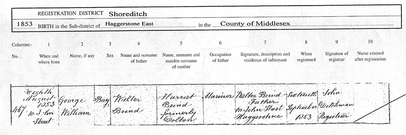 George William | Boy | Walter Brind | Harriet Brind formerly Dolton |