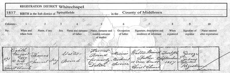 Thomas Samuel | Boy | Walter Brind | Harriet Brind formerly Dalton |