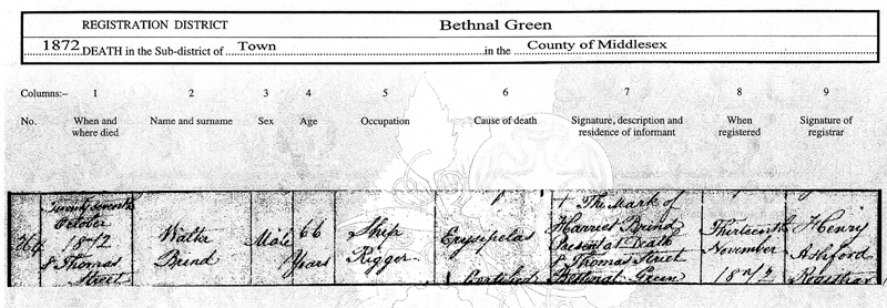x The mark of Harriet Brind Present at Death 8 Thomas Street Bethnal Green |