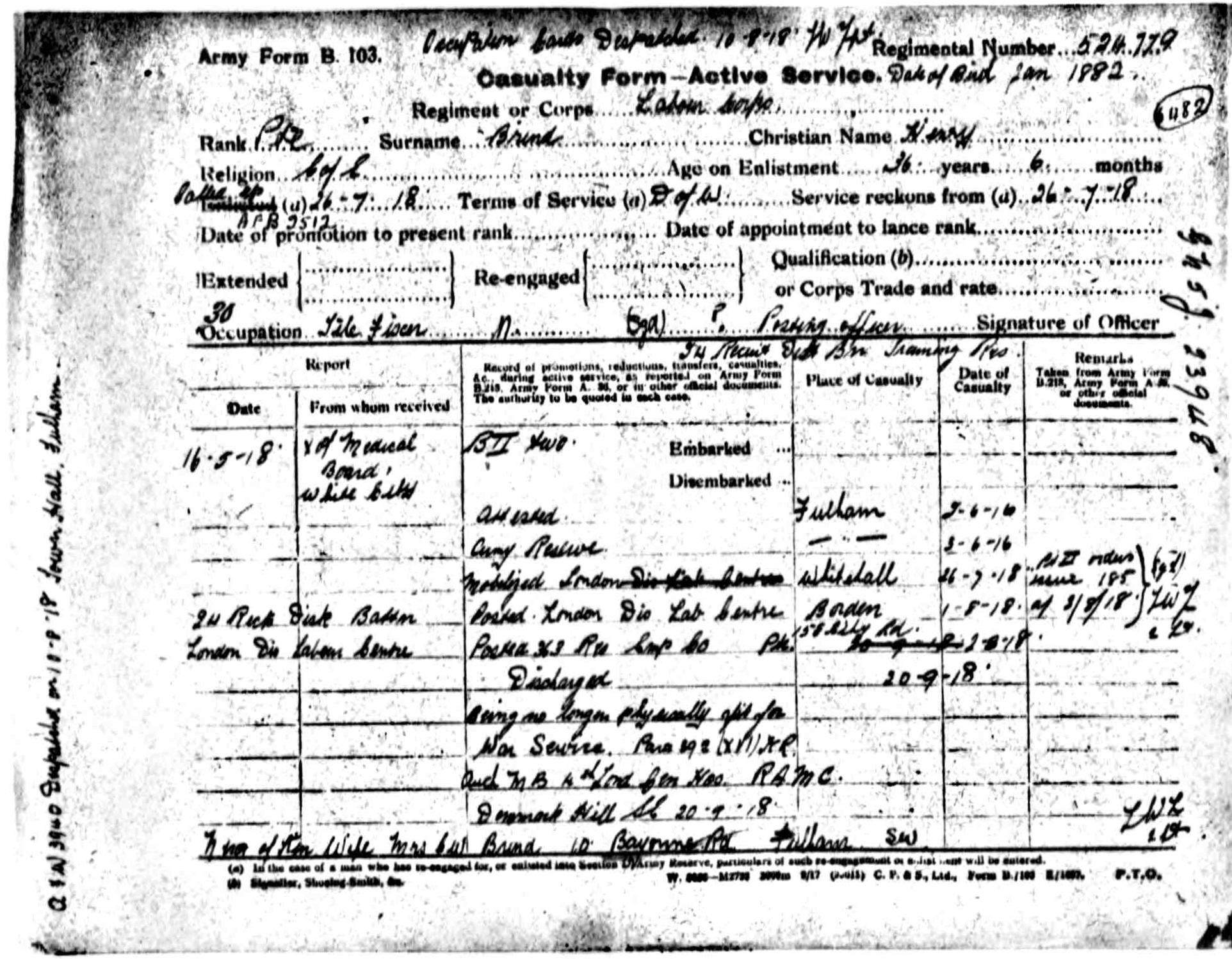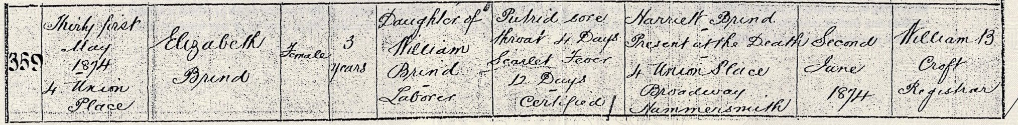 Harriett Brind present at the death 4 Union Place, Broadway, Hammersmith |