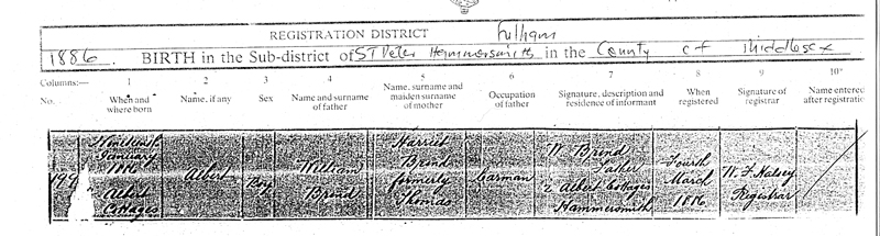 | Registration district Fulham 1886 BIRTH in the sub-district of St Peter Hammersmith in the County of Middlesex |