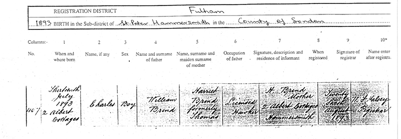 Charles | Boy | William Brind | Harriet Brind formerly Thomas |