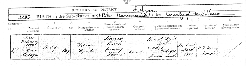 Henry | Boy | William Brind | Harriett Brind formerly Thomas |