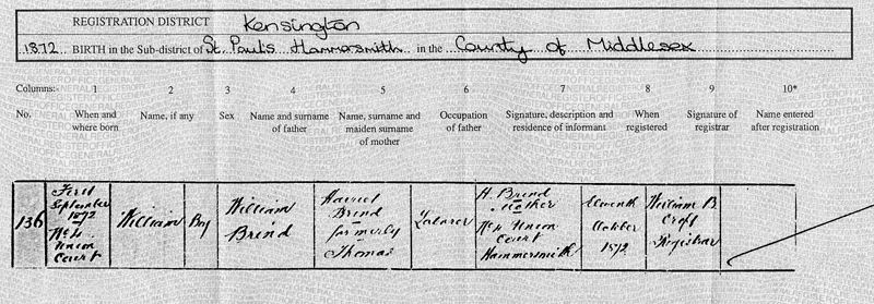 William | Boy | William Brind | Harriet Brind formerly Thomas |