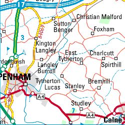 | The village of Kington St. Michael lies either side of the road between Chippenham and Hullavington (north of the M4 and west of the A429) which runs north-west from a small valley below Tor Hill rising about 20 metres to the brow of a hill overlooking the next valley. The earliest settlement, established by the 10th century, was at the southern end of the road around the stream in the valley. Here on the south-facing slopes are the church and manor house and other, later, principal buildings of the village. The parish of Kington St. Michael once included the hamlet of Kington Langley with its chapel of St. Peter but this became a separate parish in 1865. The present parish of Kington St. Michael now lies to the west of the A429 Chippenham-Malmesbury road. |