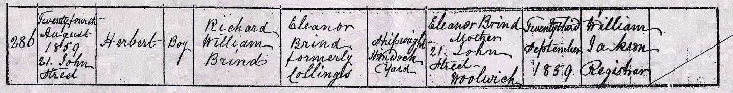 Herbert | Boy | Richard William Brind | Eleanor Brind formerly Collings |