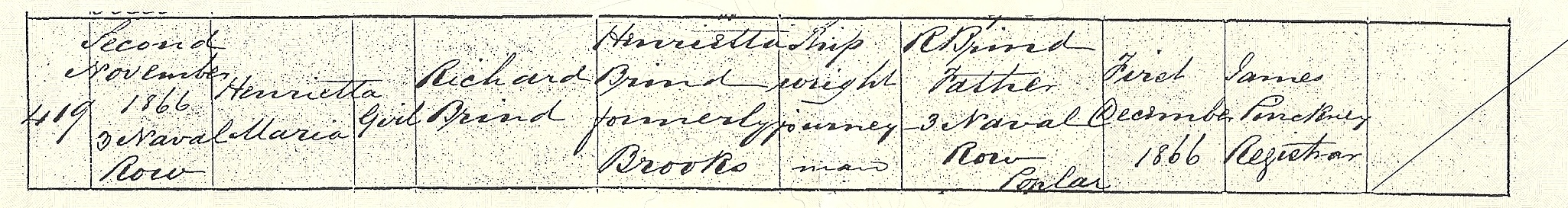 | 86 | April first 1867 3 Naval Row, North Poplar |