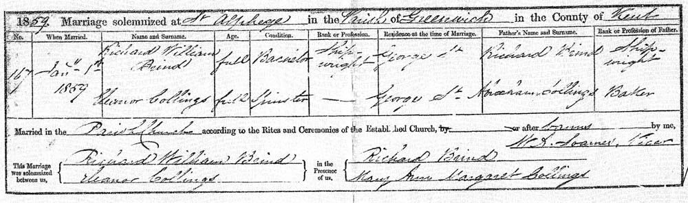 | 1859 Marriage solemnized at St ????? in the Parish of Greenwich in the County of Kent |