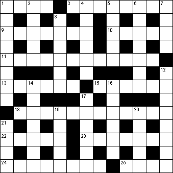 Across: 1 Buff, 3 Relaxing, 9 Sex life, 10 Enter, 11 Body-builders, 13 Beluga, 15 Ice man, 18 Stiletto heel, 22 Flood, 23 Aquatec, 24 Respects, 25 Elan.