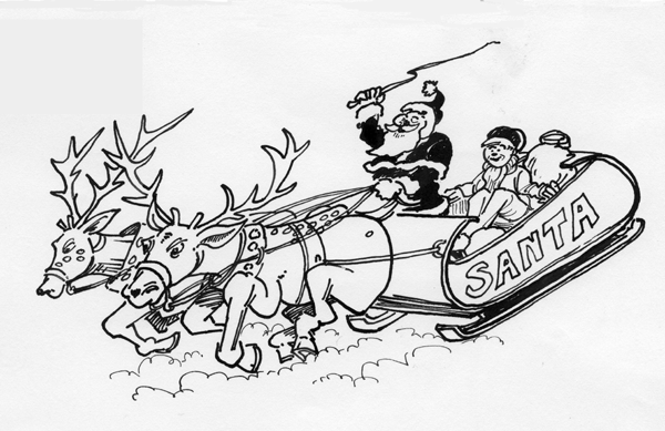 "Where do you want to go?" asked Santa. "We can go anywhere in a trice."