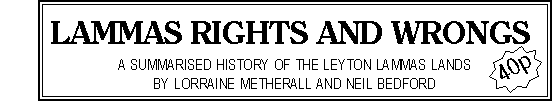 This is a short history of the Leyton Lammas Lands. It concentrates on what has happened since 1890 to these lands on which local people have rights of access.