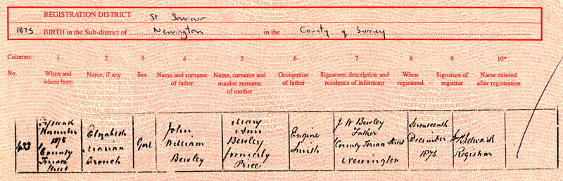 St Saviour 1875 Birth in the Sub-district of Newington in the County of Surrey |